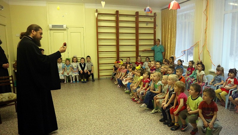 Все проходят в игровую группу и начинается детский пасхальный концерт. Сколько улыбок на лицах детей во время их выступления: они и поют, и танцуют, и дикламируют стихи, радуясь что вновь пришел к ним этот светлый праздник Святой Пасхи!