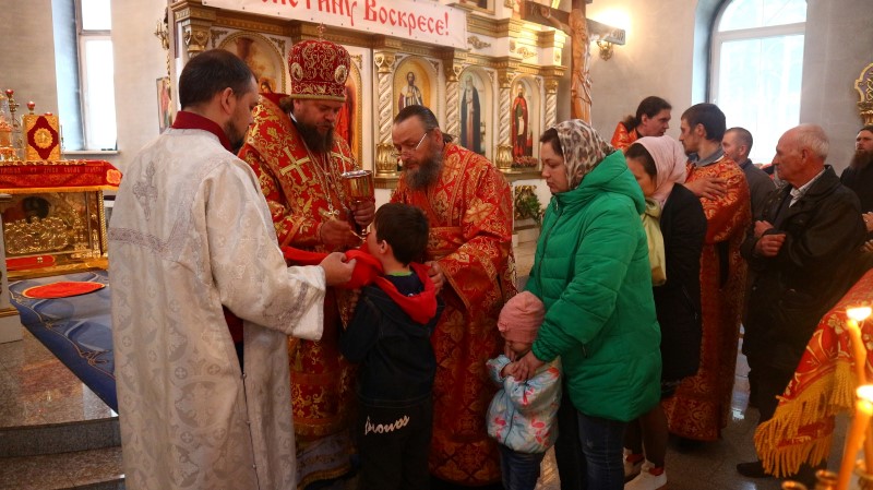 В воскресной проповеди по окончании богослужения Владыка поздравил всех прихожан с праздником Святой Пасхи и пожелал им, чтобы пасхальная радость, наполнившая их сердца в Светлое Христово Воскресение, не покидала их в течение всей жизни.