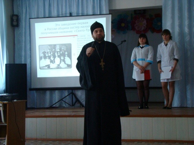 21 апреля, в пятницу Светлой седмицы, иеромонах Мелхиседек (Свистелин), благочинный Центрального округа Карасукской епархии, посетил Купинский медицинский техникум по приглашению его директора Марины Алексеевны Недбаевой.