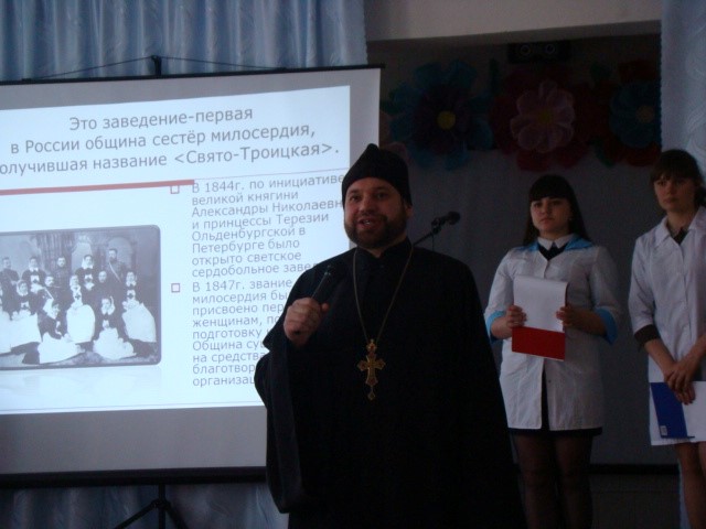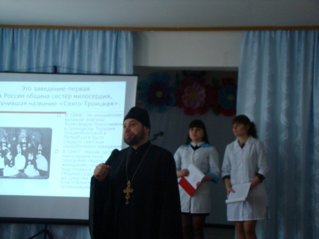 Батюшка призвал студентов, желающих проявить заботу о ближних, сплотиться в братство. В данный момент при Купинской районной центральной больнице действует сестричество. И это братство назвать в честь первого врача, основателя больницы в г. Купино, — доктора Владимира Николаевича Россова.