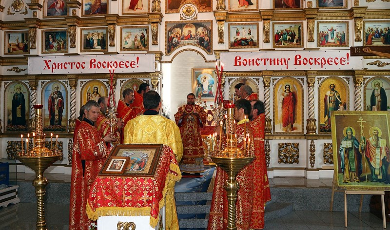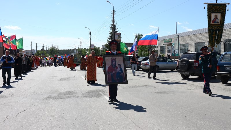 После литургии был совершен молебен и крестный ход в честь Дня славянской письменности и культуры по центральной улице рабочего поселка от собора в честь Живоначальной Троицы до храма во имя Святителя Николая.