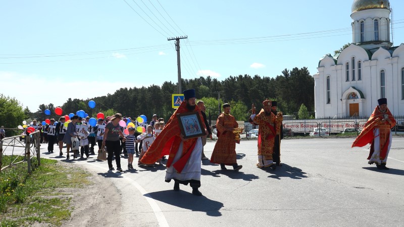 В крестном ходе приняли участие духовенство Карасукской епархии, казачество, а также ученики местных школ поселка и его жители.