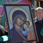В 11.00 прошёл крестный ход от Кафедрального собора по центральной улице города мимо Мемориала воинской славы до храма во имя св. равноапостольного князя Владимира.