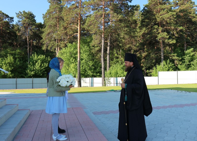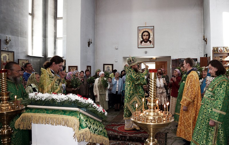 В приветственном слове по окончании богослужения Владыка поздравил всех с Днем Святой Троицы и престольным праздником. Он отметил, что праздник Пятидесятницы заключает в себе двойное торжество: во славу Пресвятой Троицы и во славу Пресвятого Духа, видимо сошедшего на апостолов в виде огненных языков и запечатлевших Новый вечный Завет Бога с человеком и с тех пор не покидающий верующих во Святую Троицу и что этот день является днем рождения Матери Церкви.