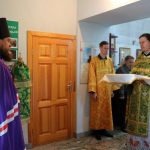 Правящий архиерей преподал всем присутствуюшим архипастырское благословение, окропил всех святой водой и в честь престольного праздника всех прихожан пригласили в трапезную, расположенную в цокольном этаже собора, где были накрыты праздничные столы на 100 человек.