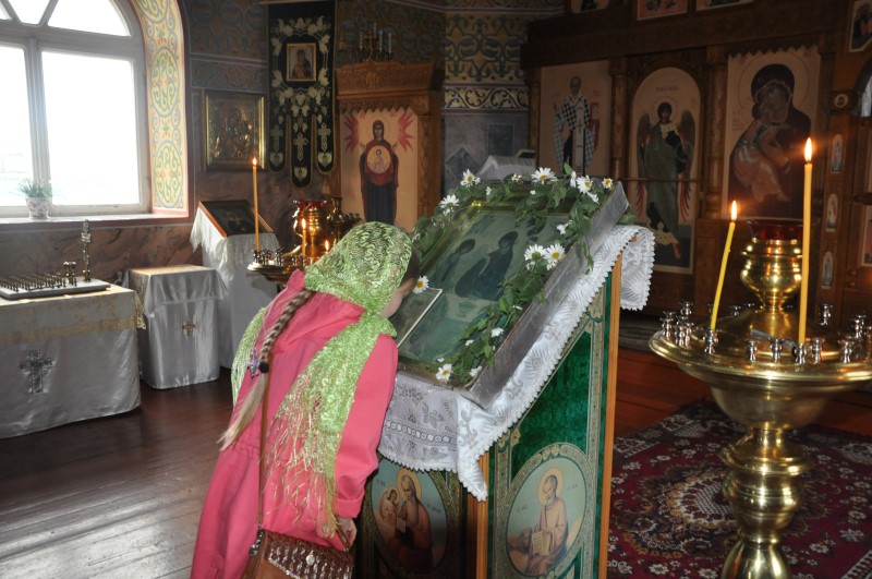Настоятель храма иеромонах Мелхиседек (Свистелин) приветливо встретил паломников у порога дома Божия и провел с ними итересную экскурсию по храму.