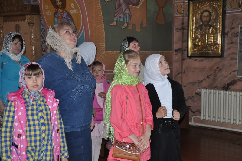 После экскурсии по храму дети поднялись на колокольню и позвонили в колокола. Кроме этого расписанного храма иеромонах Мелхиседек провел с паломниками экускурсию и по Преображенскому храму города Купино.