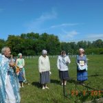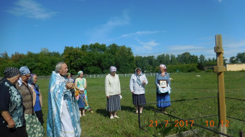 Божественную литургию совершил протоиерей Александр Лупарев. По окончании Литургии прошел крестный ход до поклонного креста, установленного на месте прежнего храма.