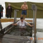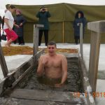 Как обычно после водоосвящения в храме начинается водоосвящение для желающих искупаться на реке Карасуке.
