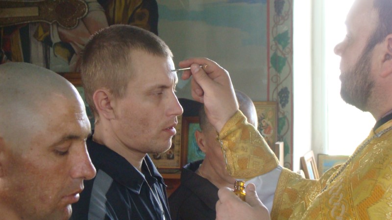 По завершении таинства батюшка посетил отряды, где проживают осужденные. Он провел беседы с осужденными и, благословляя их, окроплял святой водой.