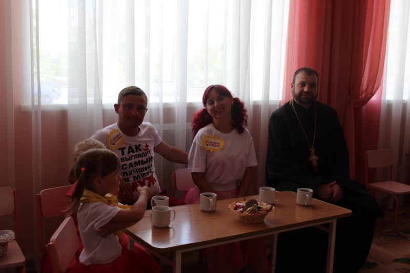 Спортивный праздник прошел весело, на одном дыхании! В заключение, после того как были вручены призы, все собрались в музыкальном зале детского сада «Солнышко» и за чашкой чая родители задавали вопросы иеромонаху Мелхиседеку. Все вопросы в основном касались создания семьи, семейных традиций и семейного воспитания.