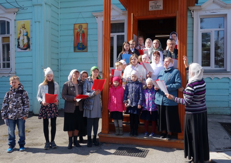 4 мая, в субботу Светлой седмицы, по окончании праздничного богослужения ученики воскресной школы Иоанно-Предтеченского мужского монастыря г. Новосибирска, прибывшие сюда на 2-х автобусах вместе с директором школы Заливчий Лидией Петровной, показали прихожанам храма Пасхальный концерт, который состоялся прямо во дворе храма.