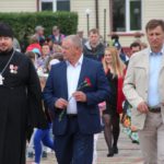 Затем у Монумента славы были возложены цветы. Вечером батюшка принял участие в акции «Свеча памяти». Колонна со свечами прошла от Дома культуры до Монумента славы, где была совершена заупокойная молитва о тех, кто за веру и Отечество душу свою положил.