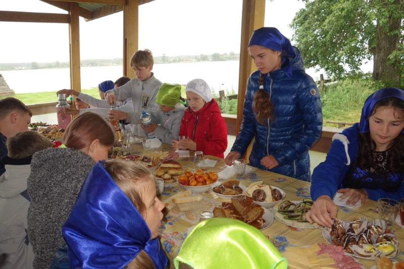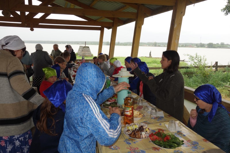 В 11.00 в храме был совершен молебен свв. апп. Петру и Павлу. После молебна все дети были приглашены на обед под открытым небом, который для них и Владыки заботливо, с любовью приготовили прихожане. И надо сказать, необыкновенно вкусный!