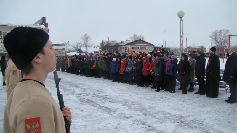 Иеромонах Мелхиседек объяснил слова гимна России «Россия Священная Наша Держава», он поведал присутствующим о жертвенной любви своих героев к нашему Отечеству и сказал: «Хочу сказать и о том, о чем ныне говорить не модно, но без чего России не выжить и не возвыситься – о геройстве, подвижничестве и подвиге. Герои и подвижники самим фактом своего существования очищают жизненное пространство от демонических, разрушительных сил, низменных мыслей и деяний. Мы должны добиться того, чтобы дети мечтали стать героями, примеряли на себя качества и героическую историю своих отцов, дедов и прадедов, свершивших огромное множество славных дел, среди которых особо возвышается Великая Победа в Великой Отечественной войне». Затем присутствующие на мероприятии возложили живые цветы к мемориальной стене с именами героев-земляков и почтили их память минутой молчания.