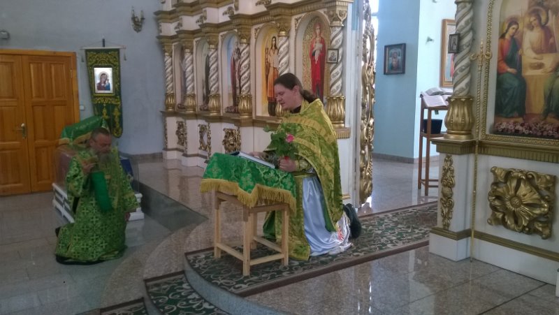 После Литургии, на вечерне, были прочитаны коленопреклоненные молитвы.