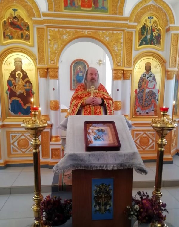 4 ноября/среда в День народного единства и день празднования в честь Казанской иконы Божией Матери, иеромонах Сергий (Виноградский) совершил Божественную литургию в новом храме св. равноапостольного кн. Владимира г. Карасука.