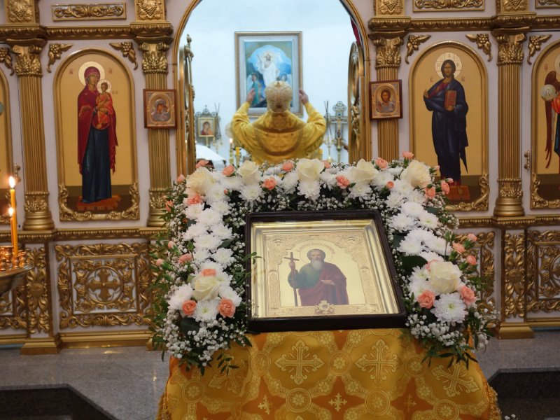 Владыка отметил, что св. апостол Андрей — великий проповедник Христова благовестия, великий угодник Божий. Он всецело посвятил свою жизнь служению Богу. Сначала он отправился проповедовать в страны Малой Азии, а позднее Святое Евангелие проповедовал в Крыму галлам и скифам и там составил русскую азбуку, которая легла в основу азбуки, составленной св. равноапостольными братьями Кириллом и Мефодием, учителями Словенскими.