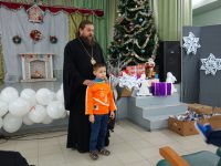 По его окончании Владыка сердечно поздравил детей и их воспитателей с Рождеством Христовым, пожелал детям здоровья, радости, крепкой дружбы и помощи Родившегося Богомладенца, а воспитателям — доброты, терпения, любви и внимания к детям, которые как воздух необходимым их воспитанникам.