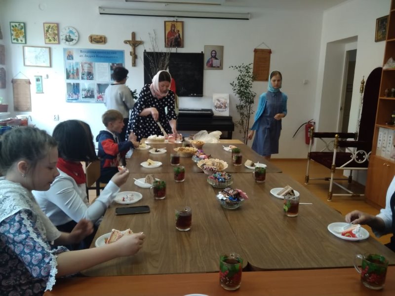 Праздник закончился чаепитием с батюшкой.