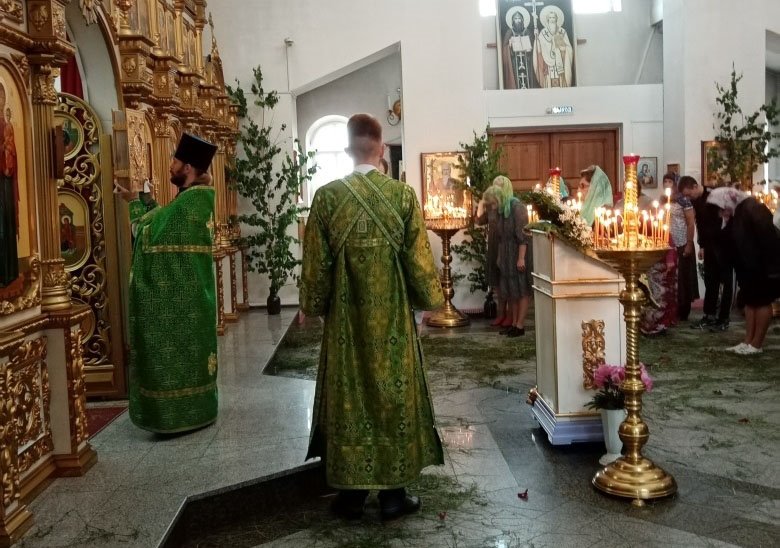 20 июня/воскресение. В день Святой Троицы секретарь Карасукской епархии иерей Антоний Баранов совершил Божественную литургию в Кафедральном соборе св. апостола Андрея Первозванного г. Карасука. По окончании литургии состоялась великая вечерня с чтением коленопреклоненных молитв.