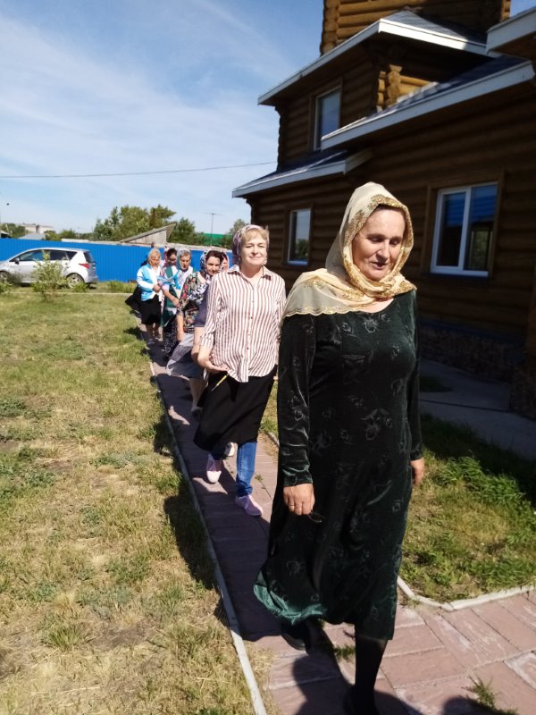 Прихожане крестным ходом с пением тропаря Пресвятой Троицы обошли вокруг храма.