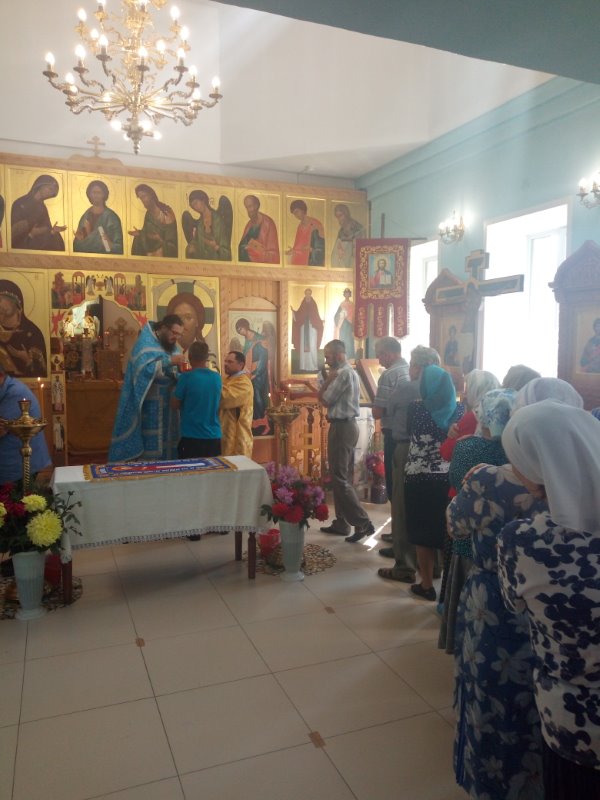 В храм во имя преподобного Сергия Радонежского с. Довольного почтить Пречистую Матерь Божию собрались почти все прихожане.