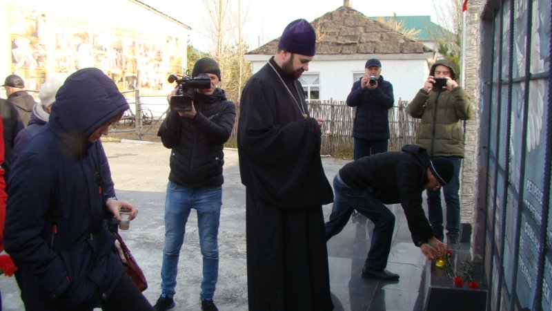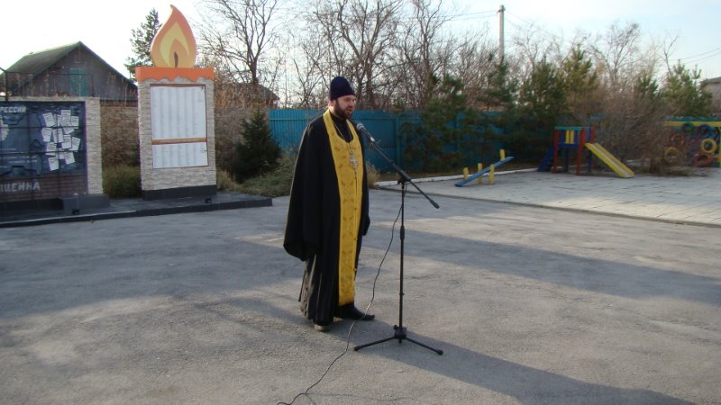30 октября/суббота. В день памяти жертв политических репрессий иеромонах Мелхиседек (Свистелин), благочинный Центрального округа Карасукской епархии, посетил памятное мероприятие, проводимое районным краеведческим музеем у памятника жертвам политических репрессий.