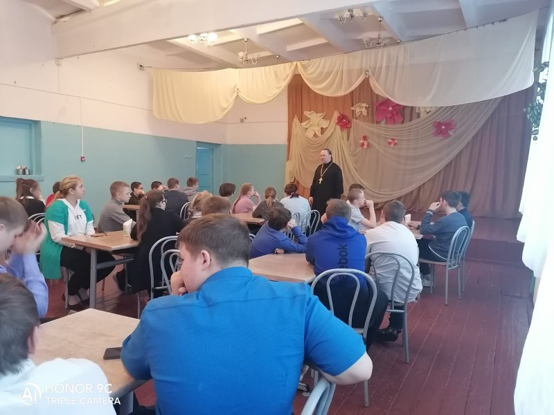 Иерей Михаил посетил сельскую школу и провел беседу с учениками на духовно-нравственные темы. Рассказал о 10 Божиих заповедях и православной вере.