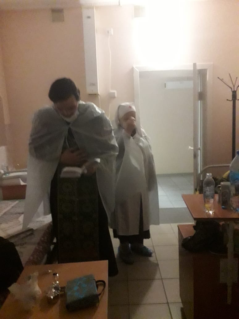 Посещение инфекционного отделения Карасукской ЦРБ 24 февраля иерей Антоний Нечепоренко посетил инфекционное отделение Карасукской центральной районной больницы. Батюшка соборовал, исповедовал и причастил Святых Христовых Таин ее пациентов.