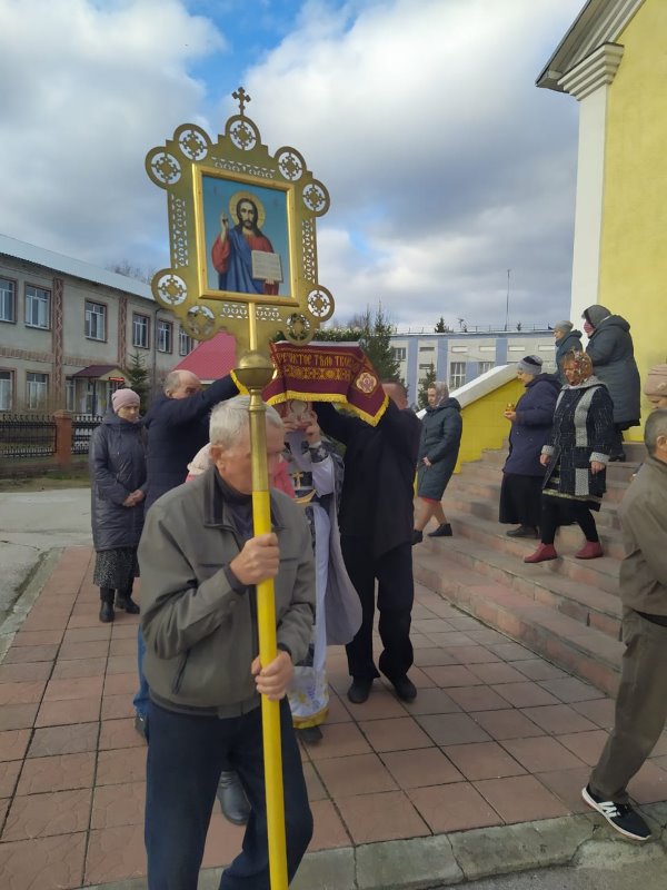 В конце богослужения под пение «Святый Боже, Святый Крепкий,..» батюшка возглавил крестный ход с Плащаницей вокруг храма.