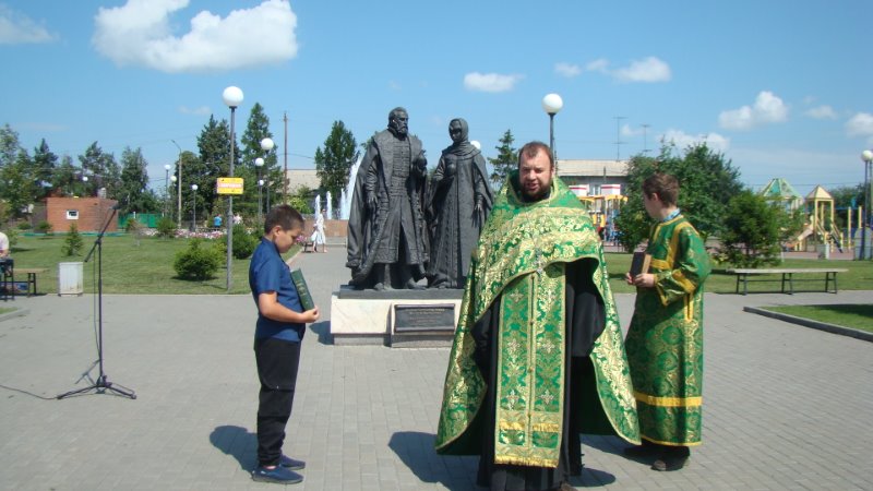 8 июля/пятница. В день семьи, любви и верности иеромонах Мелхиседек (Свистелин), благочинный Центрального округа Карасукской епархии, совершил молебен перед памятником святым благоверным князю Петру и княгини Февронии, Муромским чудотворцам, который установлен в городском парке г. Купино. По окончании молебна батюшка обратился со словом назидания к собравшимся и благословил молодую семью Дионисия и Вероники, только что вступившую в брак.