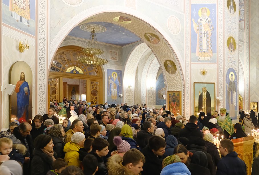 По окончании Святого Причащения митрополит Феогност поздравил всех с праздником и обратился к собравшимся с архипастырским словом о значении родительского примера в воспитании детей.