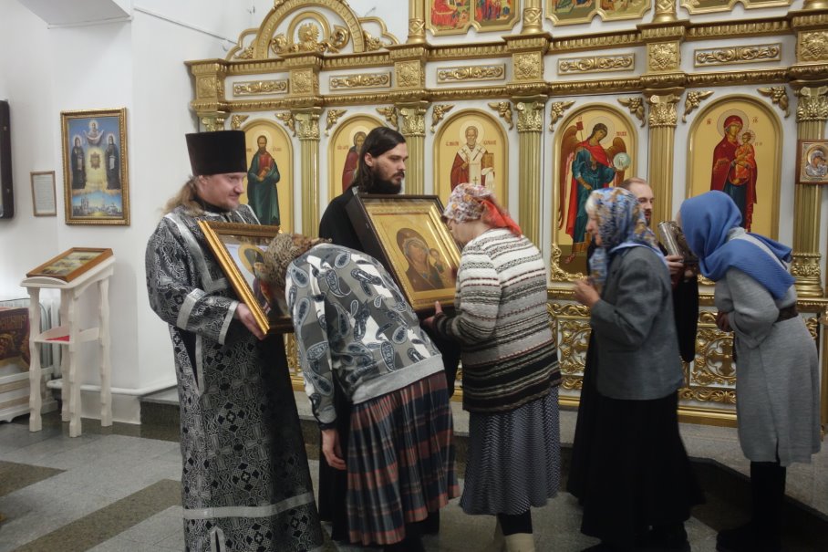 Далее Владыка преподал крест для целования клирикам и мирянам кафедрального собора, которые подходили к архипастырю, чтобы получить благословение на прохождение Великого поста.