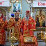 Прихожане храма с букетами хризантем и тюльпанов с благоговением встретили святыни: икону святой блаженной Матроны Московской с мощами, икону святителя Луки Войно-Ясенецкого (Крымского) с мощами, икону святителя Макария, митрополита Алтайского и Московского, с мощами и ковчежец с мощами угодников Божиих.