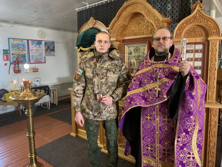 По завершении богослужения протоиерей Евгений благословил воина на ратный подвиг служения нашему Отечеству, на защиту Русского мира.