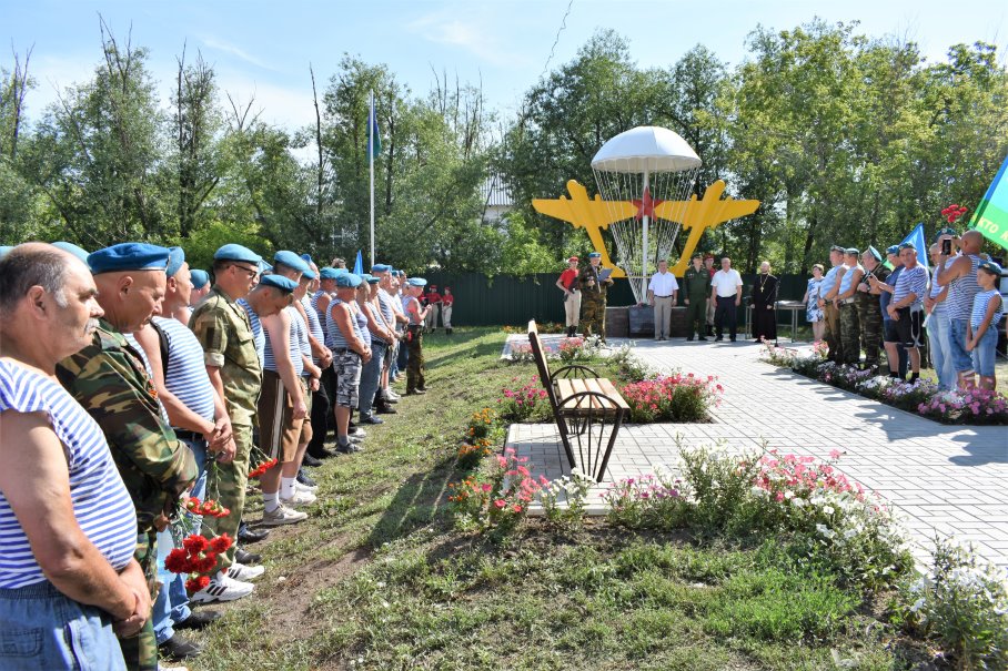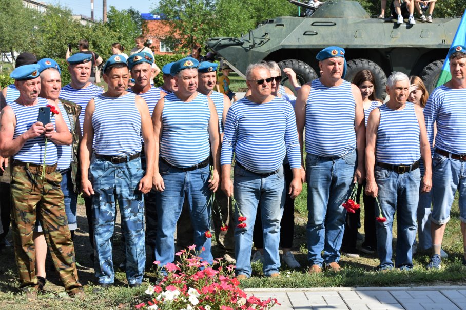 Ведущий митинга, председатель общества «Боевое братство» Карасукского района, Юрий Кончуковский вместе с главой района Александром Гофманом, председателем Совета депутатов района Юрием Объедко и секретарем Карасукской епархии иерей Антонием Барановым поздравил десантников с праздником.