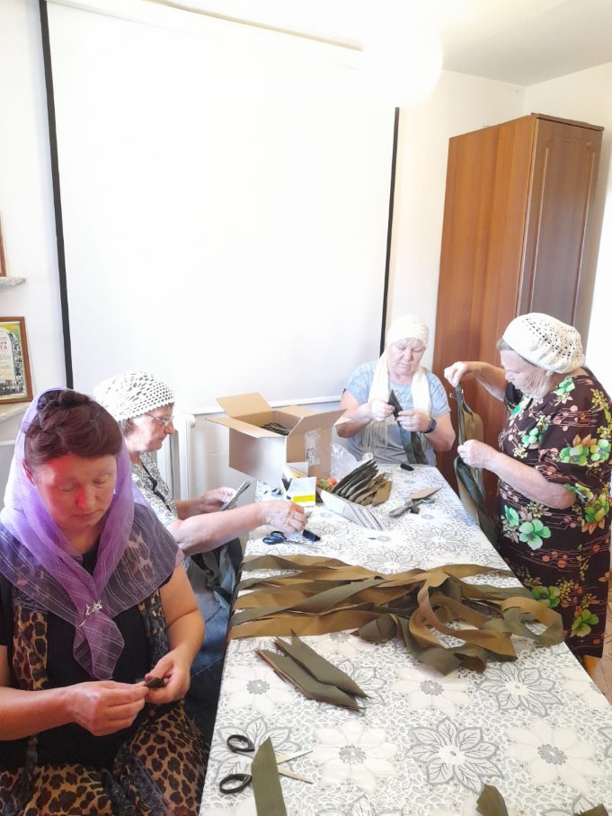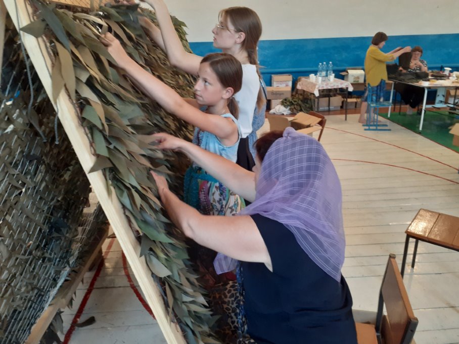 Недавно освоили технологию изготовления маскировочных сетей «Леший — 2» высокой категории маскировки. Одна из прихожанок храма предоставила помещение, соработники из села Журавки изготовили станок. Произведена закупка специальных тканей и иного сырья.