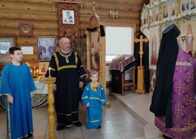 15 марта протоиерей Евгений Зверев в храме во имя прп. Сергия Радонежского р.п. Краснозерское совершил всенощное бдение с чином выноса Честного и Животворящего Креста Господня,